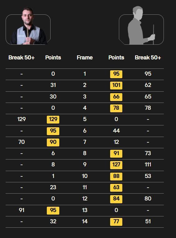 第二阶段王信伯延续了之前的良好状态,开局打出了单杆53分,随后又赢下了一局防守大战,第12局轰出单杆80分,取得了9-3的同时进入了自己的赛点局,尽管曼恩打出单杆91分挽救了一个赛点,但是第14局比赛,王信伯还是敢打敢拼,用单杆51分终结比赛,最终以10-4终结了比赛。