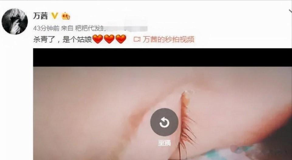 同年11月,她在微博发布一条15秒视频,配文“杀青了,是个姑娘”,正式宣布诞下女儿。